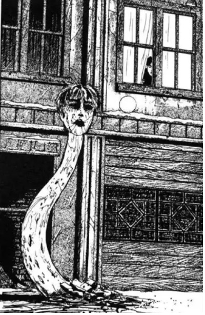 Cuando lo inexplicable toca a los cuerpos, el resultado puede ser fascinante, como es el caso. Los miedos en Junji Ito no son mera sensación, ni mera intelección, no son solo esa sensación inasible que muchas veces describimos como un frío en la espalda. Los miedos están proyectados en la superficie de las cosas, en los diseños del territorio, por ejemplo, o en las deformaciones del espacio y los cuerpos: en La ventana de al lado, la sensación de ser observado desde la casa vecina se vuelve insoportable una vez que es la estructura misma que se acerca telescópicamente; en Capas de miedo, el rechazo a envejecer encarna en cuerpos que se construyen por capas, en que la edad está expresada en sucesivos como recubrimientos; en Alucinaciones, el protagonista, acomplejado su baja estatura, es perseguido por visiones de cuellos y extremidades que crecen desproporcionadamente. Este grupo de historias, representante de un número mucho mayor, muestra terrores personalizados, específicos, adaptados a cada cual. Parafraseando a Umberto Eco cuando habla de la parquedad de lo bello y de la variedad de lo feo, aseguraría que la valentía, a veces, resulta aburrida, pero, por otro lado, el miedo es impredecible y tiene una gama de posibilidades: la valentía es finita y el miedo es infinito.