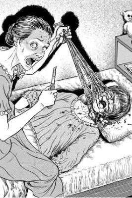No recuerdo qué fue lo primero que leí de Junji Ito. Quizá fue Tomie, quizá Uzumaki,quizá alguno de sus one-shots. De lo que he leído, recuerdo que Tomie y Uzumaki me volaron la cabeza –quizá por eso son los que recuerdo primero, porque el tiempo se me confunde con mis mejores experiencias como lector, porque lo más vivo que tengo son las lecturas que más me han gustado–. Recuerdo que sus historias breves son tan espeluznantemente variadas que no pensé que se podía tener o expresar tantos miedos distintos: el encuentro con el lugar propio, hecho para uno, en El enigma de la falla de Amigara, el deseo de transformarse para el ser amado de El cabello largo del ático, la necesidad de conectar con otro en Amigos por correspondencia o hasta una ola de suicidios vinculada a desaparecidos que caen del cielo en Cayendo. Emociones o situaciones llevadas al extremo o al sinsentido. Finalmente, el horror es algo que queda flotando como la nube de hedor de Gyo, contaminando cada espacio.